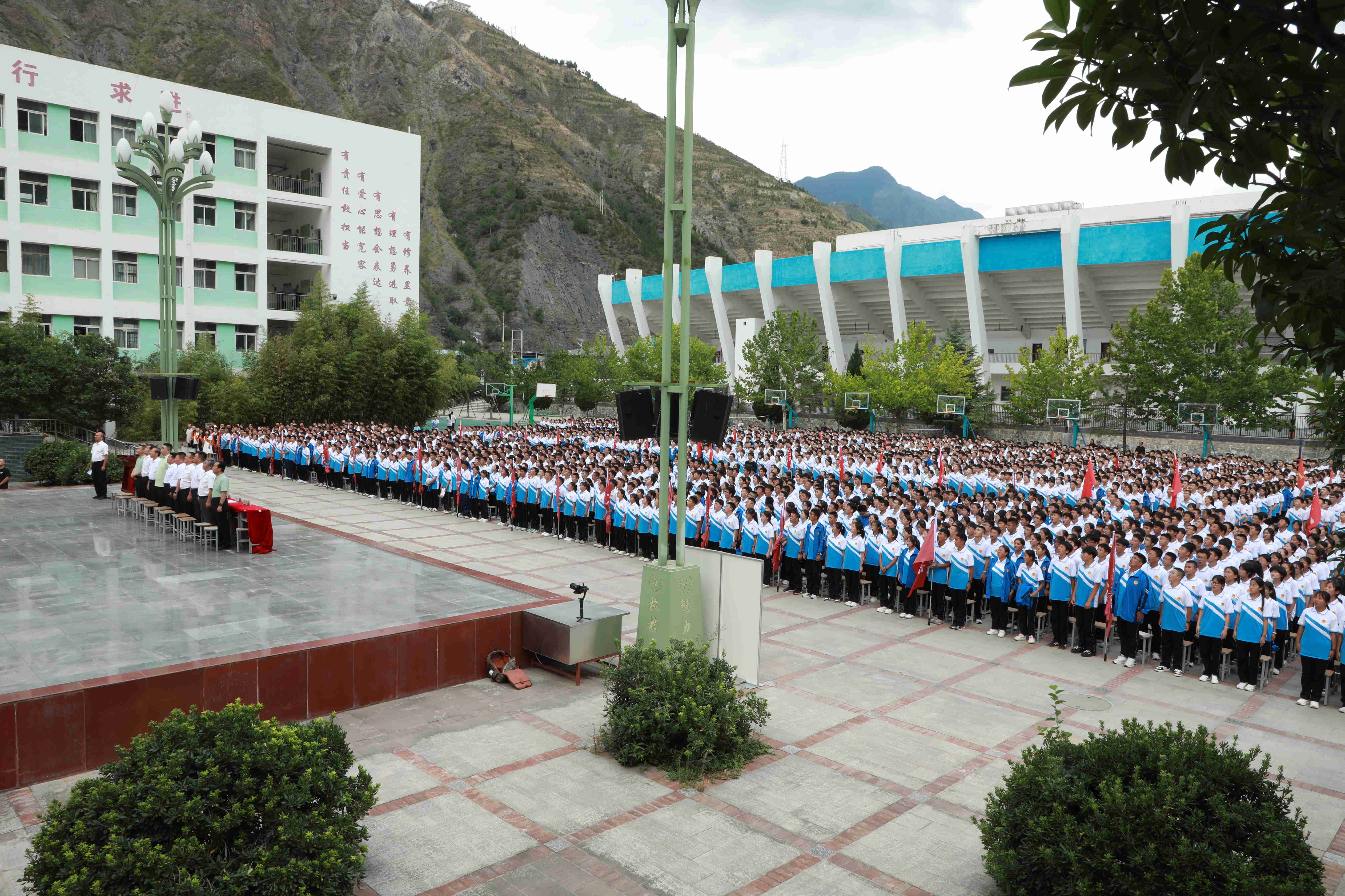 8 月 26 日下午,隴南一中校園內(nèi)紅旗飄揚、朝氣盎然,