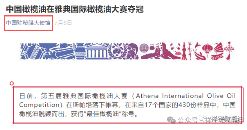 獲得“全球最佳橄欖油”稱號(hào),同時(shí)榮獲大賽最高榮譽(yù)金獎(jiǎng)!人民日?qǐng)?bào)、駐希臘大使館均發(fā)文報(bào)道。
