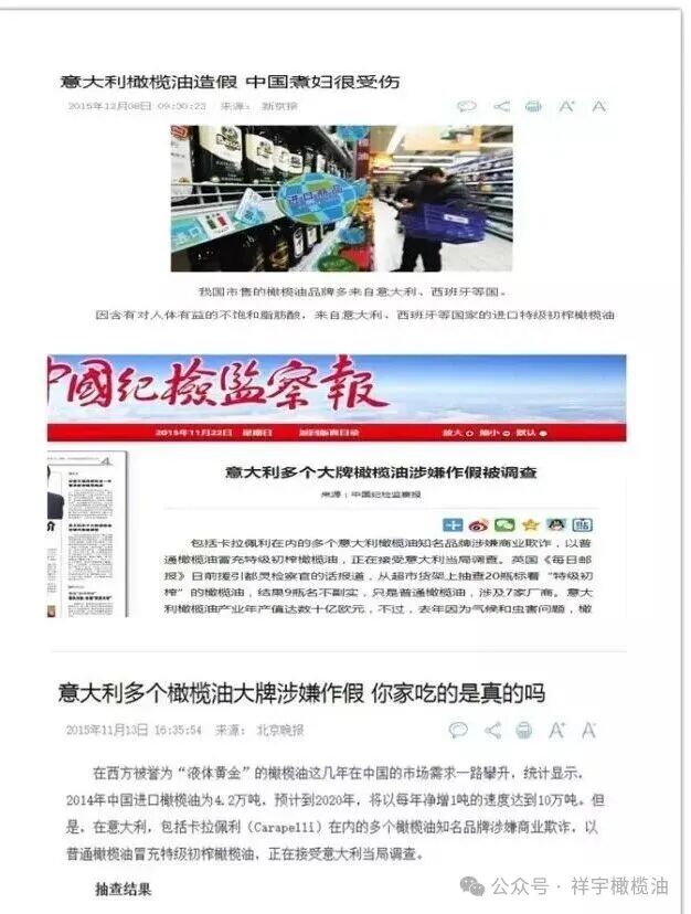 等級(jí)造假:將“精煉橄欖油”“調(diào)和橄欖油”,偽造檢測(cè)報(bào)告,冒充“特級(jí)初榨”,欺騙消費(fèi)者。