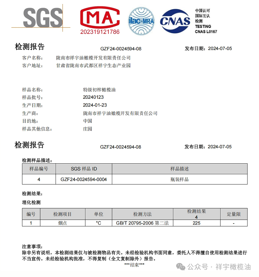 祥宇特級(jí)初榨橄欖油煙點(diǎn)報(bào)告